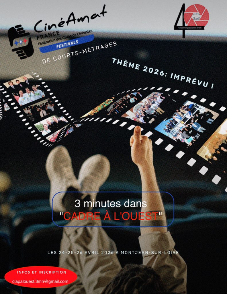 -Concours ‘3mn dans le cadre’ (ex FédéOpen) ; les régions 1, 3 et 4 inaugurent cette nouvelle formule; le thème pour notre région est ‘Imprévu’ en moins de 3mn; date limite d’envoi des films : 20 mars. Les films seront projetés lors des Rencontres Régionales et pourraient être sélectionnés pour le National.