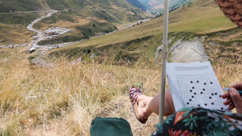 Les fans du Tour de France s’installent avant l’arrivée des coureurs.